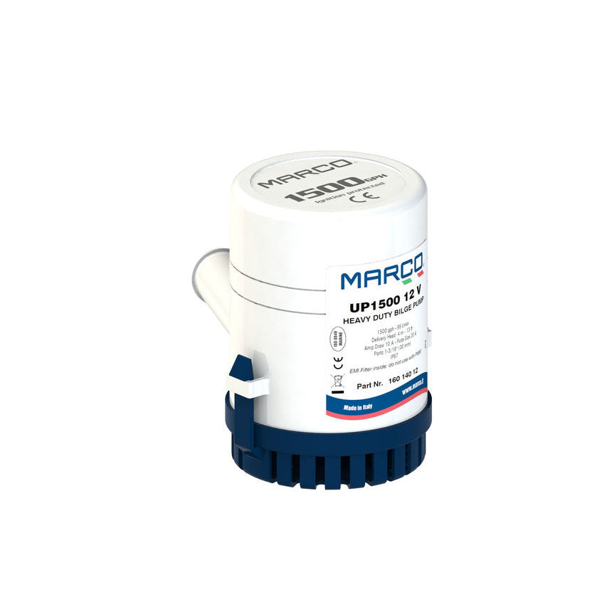 Elettropompe ad immersione per svuotamento sentina. Involucro in robusto ABS antiurto, resistente alla corrosione ed alla elettrolisi.
